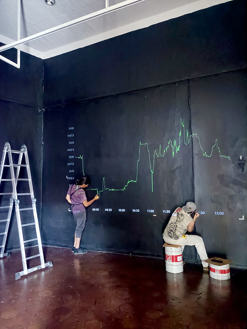 Cabe recalcar el minucioso trabajo del equipo a cargo de la curaduría, museografía y montaje, que hizo un esfuerzo constante por reivindicar lo hecho a mano, como la labor del reciclaje, evitando soluciones industrializadas que podrían conectar con menor intensidad con el público. De esta manera, casi toda la exposición fue desarrollada a partir de materiales comprados a las recicladoras; y, con excepción de las cédulas de sala, todos los textos colocados en la exposición fueron dibujados a mano sobre las paredes y soportes. Esta apuesta artesanal requirió un esfuerzo considerable y obligó a administrar la estética del error como una potencialidad.