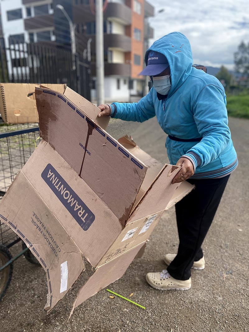 El reciclaje de base es una actividad con alta demanda de tiempo y bajos beneficios económicos. En promedio, perciben 145 dólares2, es decir, menos de un tercio del salario básico unificado ecuatoriano (fijado en 450 dólares) y menos de la quinta parte del costo de la canasta básica (764,71 dólares; INEC, 2023)4. Esto hace que, en muchos casos, se mantengan círculos de pobreza multidimensional.